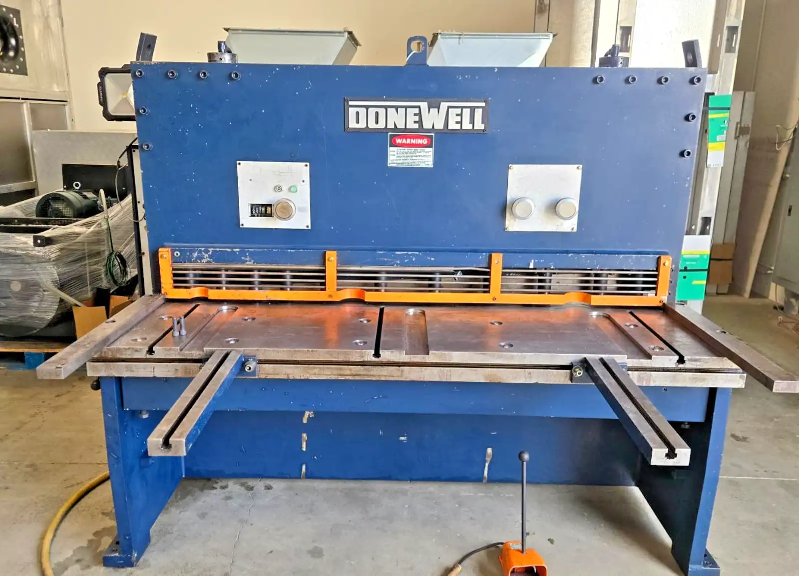 This Donewell Denmark hydraulic shear is a heavy-duty, production-ready machine capable of handling substantial material thickness while maintaining precision and efficiency. Its 6-foot cutting capacity, hydraulic performance, and repeatable accuracy make it a strong addition to any fabrication or manufacturing operation seeking reliable plate cutting capability.